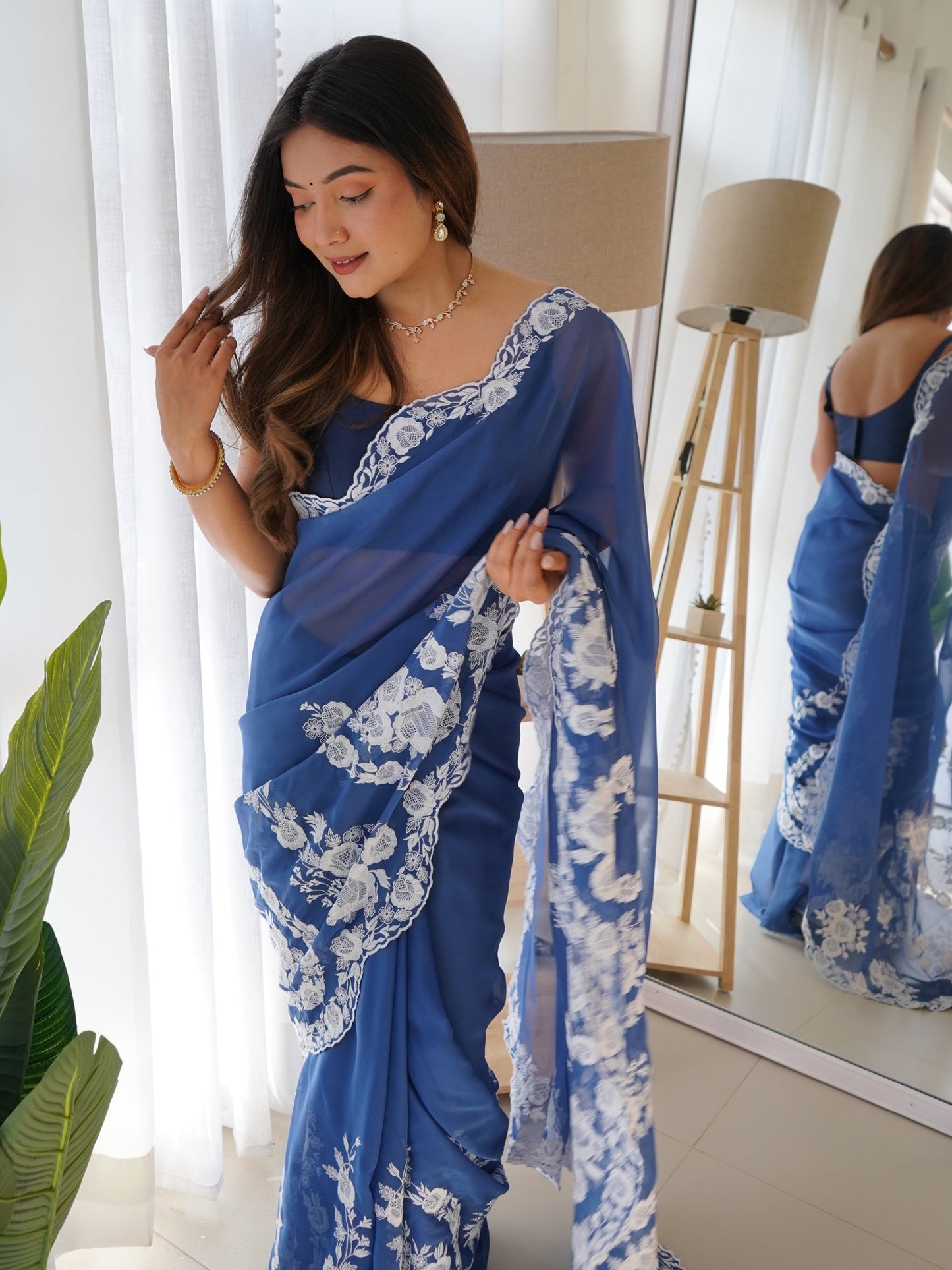 blue organza woven saree women ethnic traditional partywear wedding festive stylish elegant designer lightweight soft comfortable premium quality rich texture graceful chic versatile heritage classic modern occasion collection silk