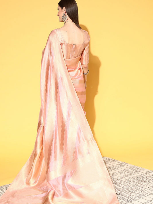 Peach Pink Partywear Organza Silk Saree