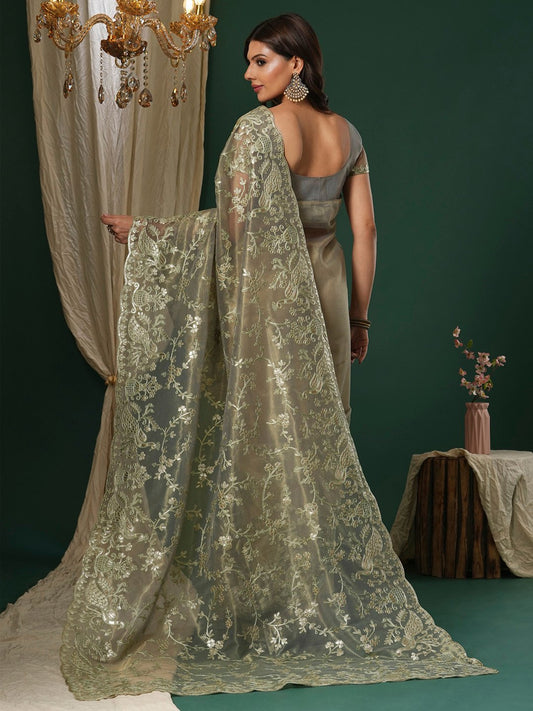 Regal olive OrganzaPartywear Saree