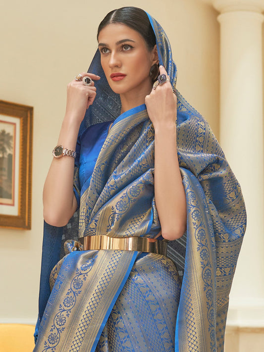 Royal Blue Partywear Kanjeevaram Silk Saree