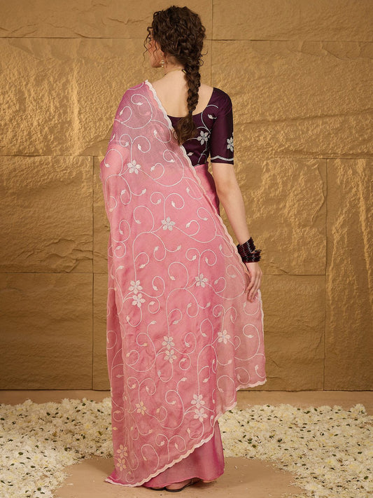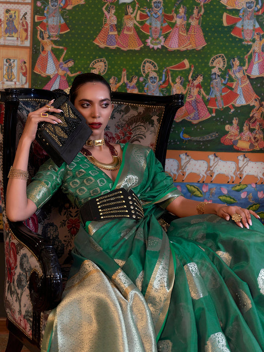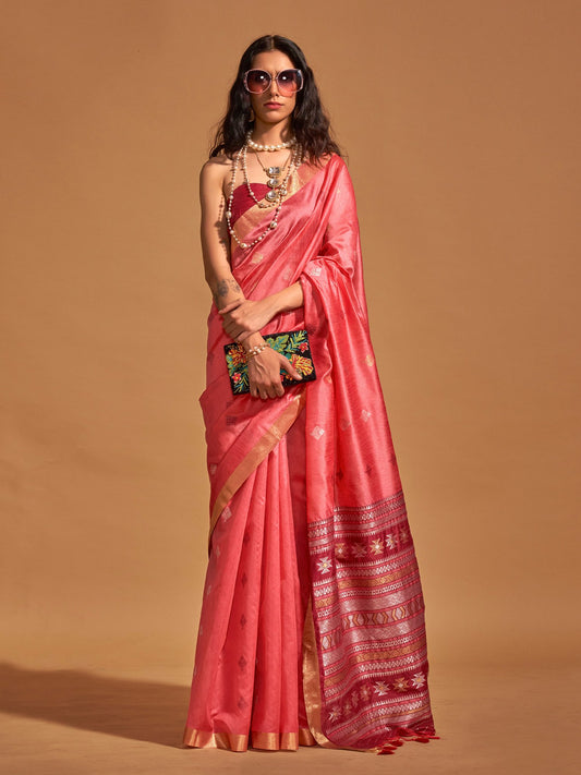 Ethnic Grey Partywear Linen Silk Weaving Saree