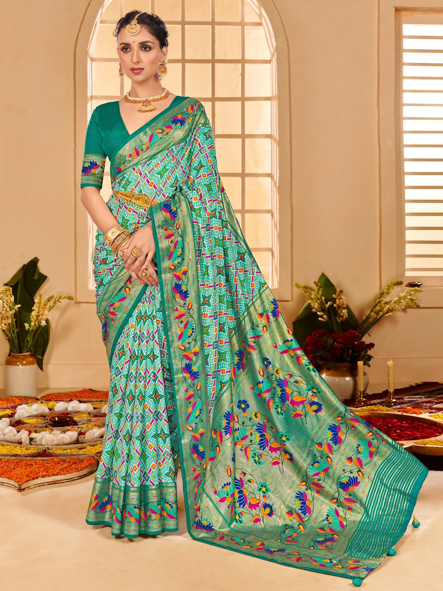 Green Floral Patola Silk Saree