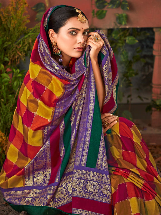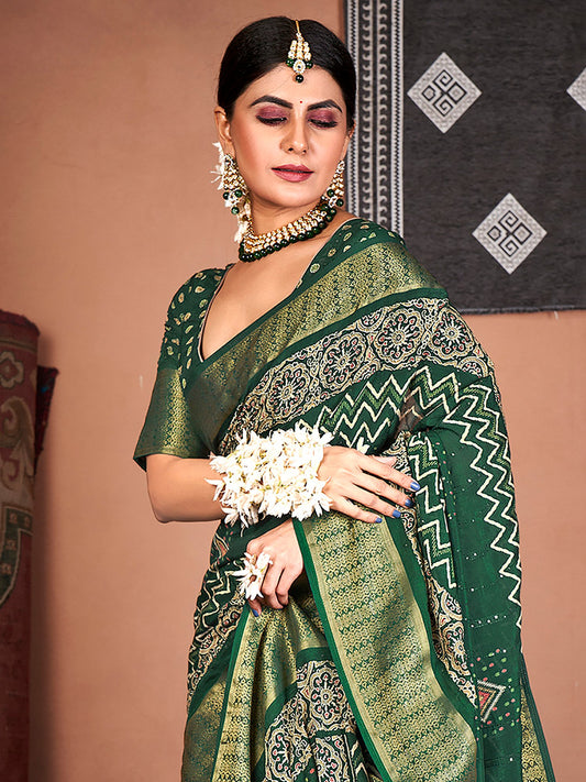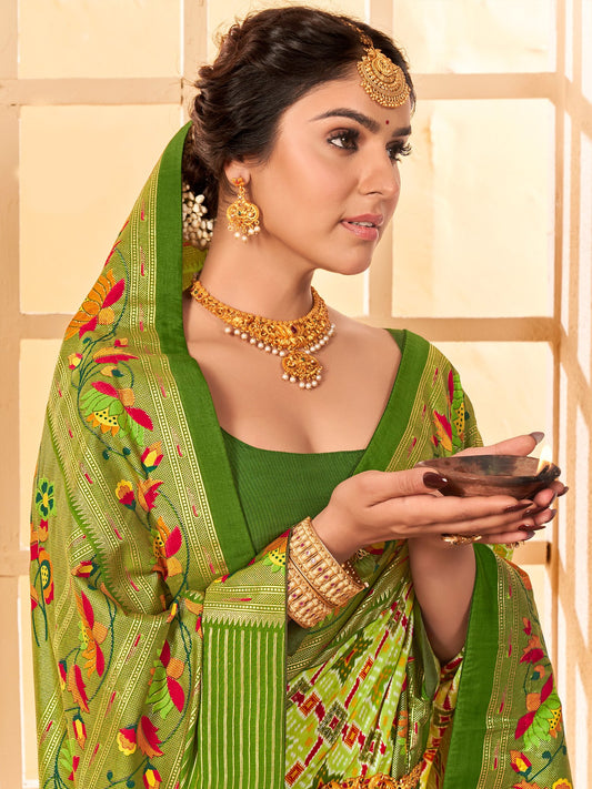 Gujrati Green Traditional Ikat Patola Silk Saree