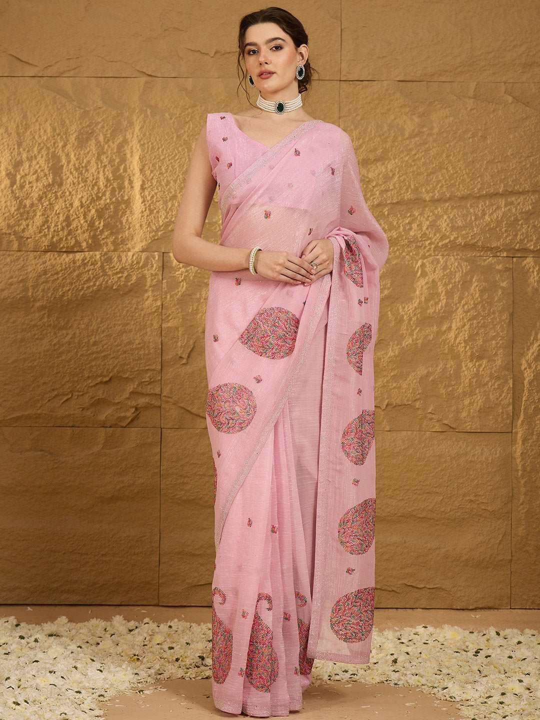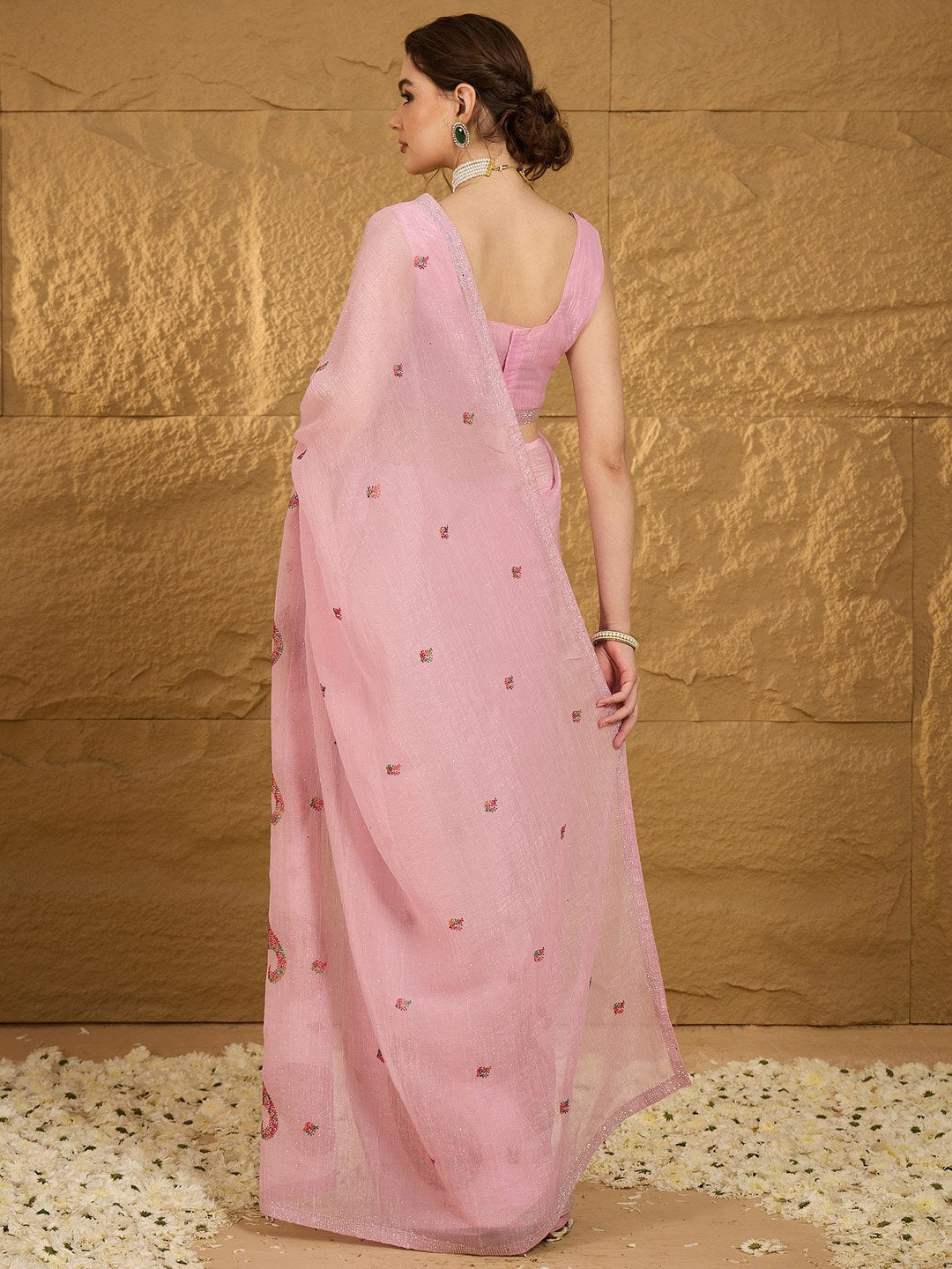 pink chiffon woven saree women ethnic traditional partywear wedding festive stylish elegant designer lightweight soft comfortable premium quality rich texture graceful chic versatile heritage classic modern occasion collection