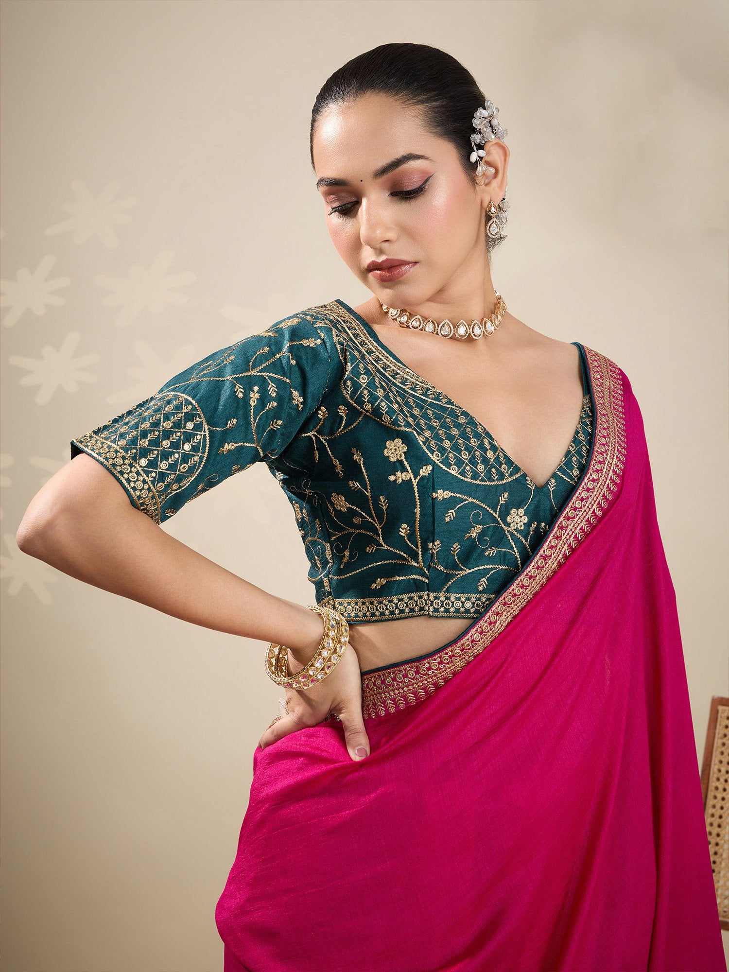 Saree color: Pink