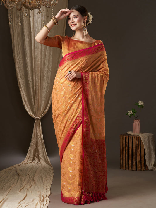 Peach Kanjeevaram Banarasi Silk Woven Saree