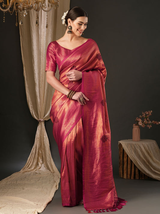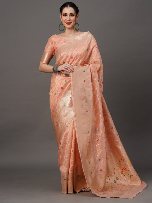 Peach Banarasi Kanjeevaram Silk Woven Saree