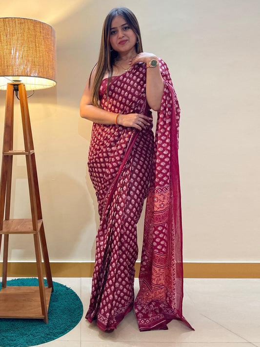 Magenta Pink Nylon Handloom Georgette Silk Saree