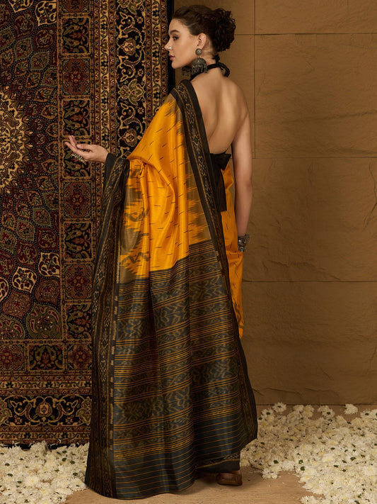 Yellow Ikat Bhagalpuri Silk Printed Saree
