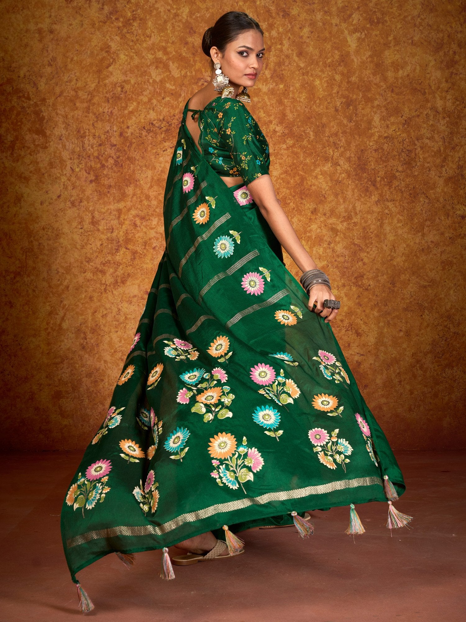 green tussar chinnon saree women fashion ethnic traditional wedding festive partywear lightweight soft comfortable elegant designer woven premium quality rich texture graceful stylish trend occasion daily wear collection heritage classic