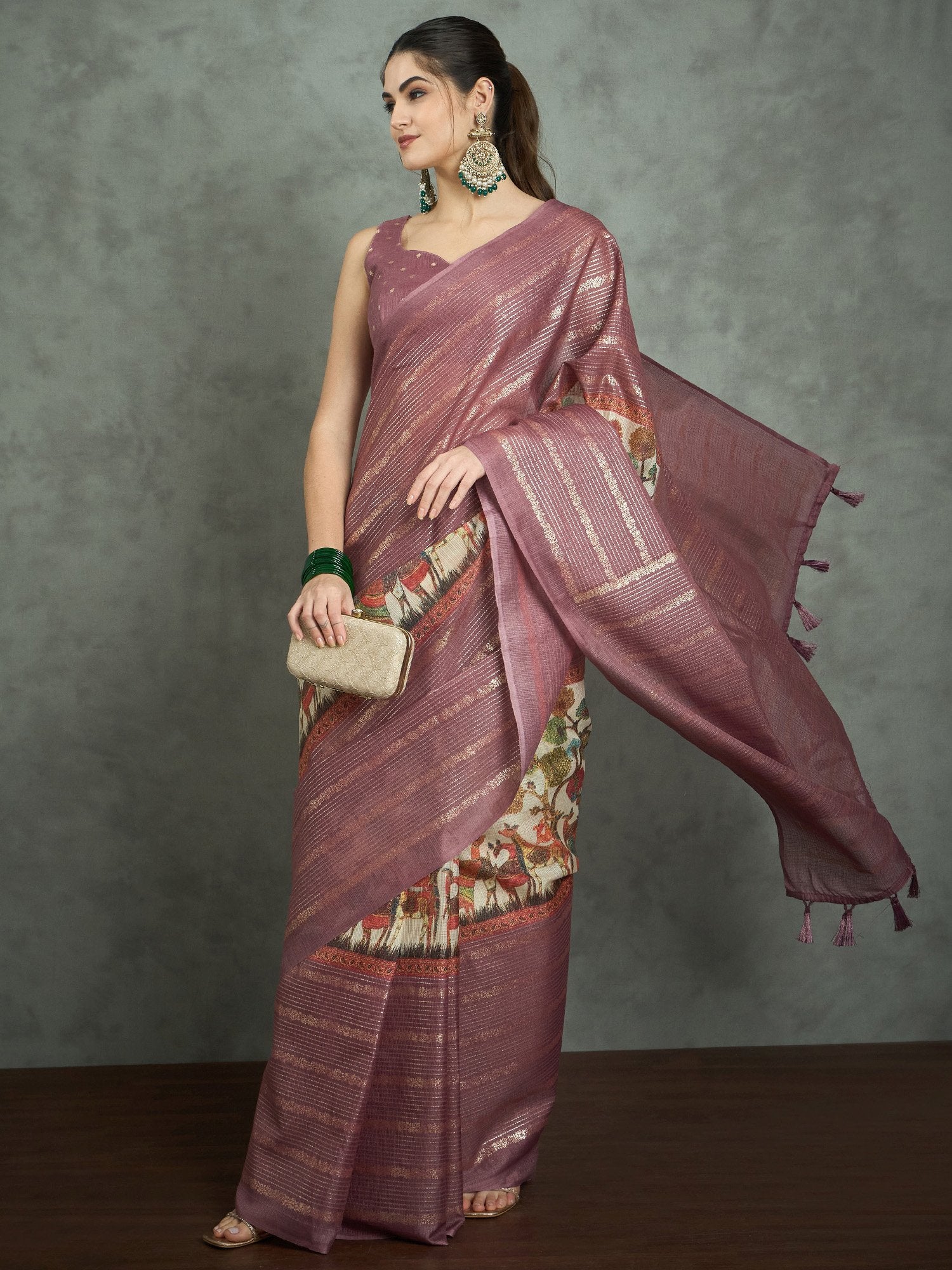 Mauve Block Print Kota Doria Cotton Printed Saree