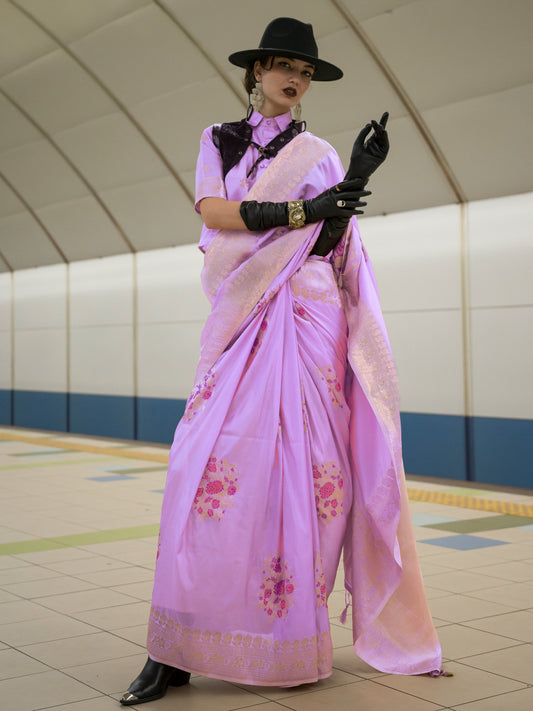 Lavender Purple Kashmiri Jamewar Silk Saree