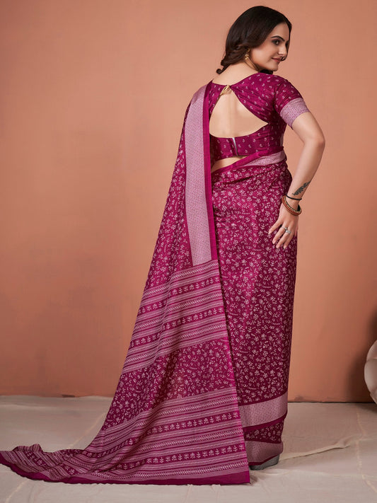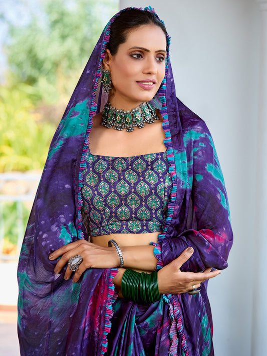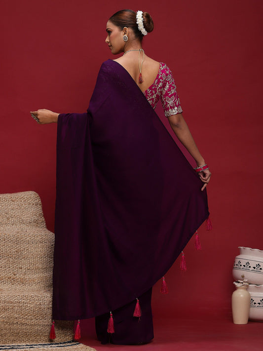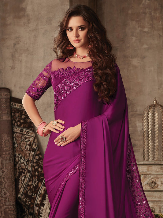 Purple Party Wear Vichitra Silk Embroidered Saree