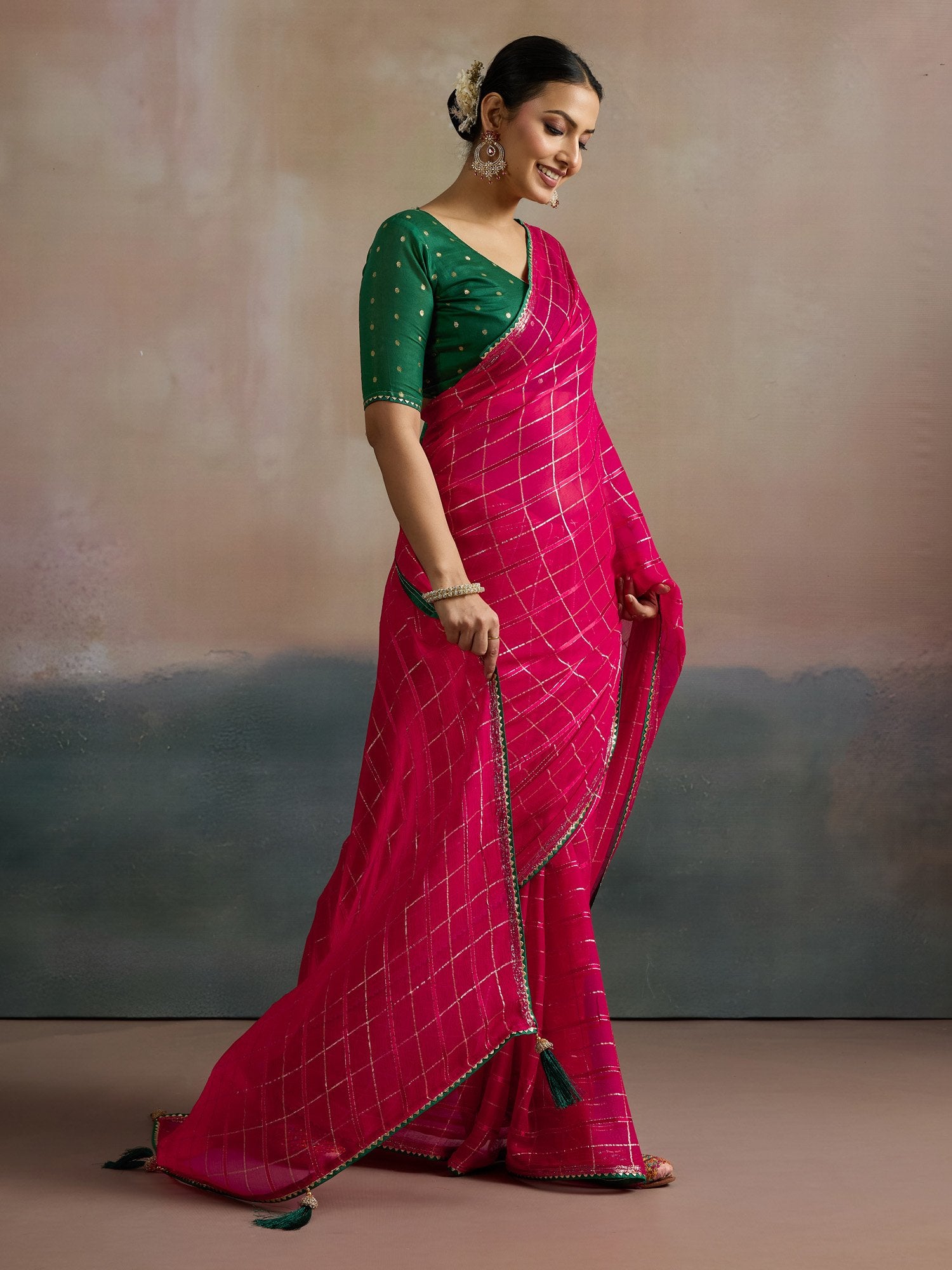 Saree color: Pink