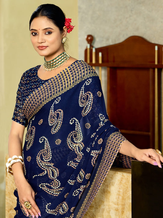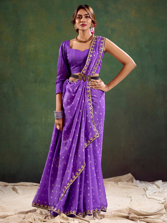 Elegant Purple Sheer Chiffon Lightweight Saree