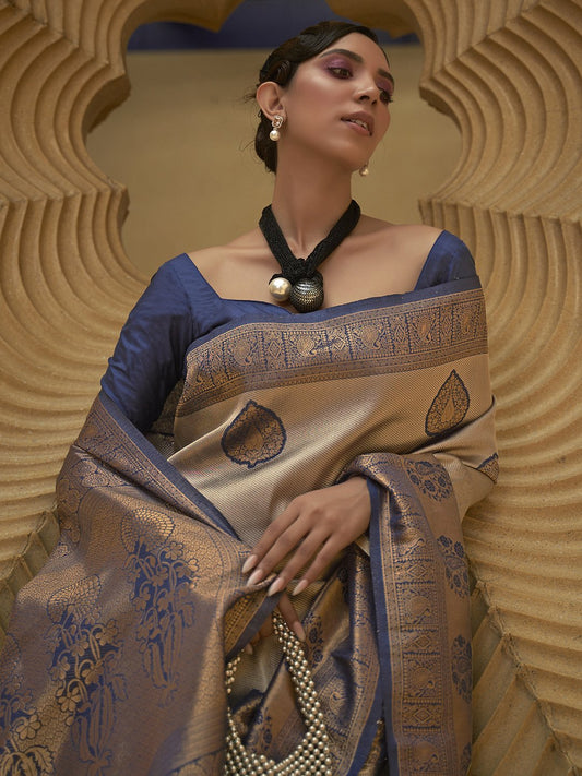Navy Blue Gujarati Ikat Patola Silk Saree