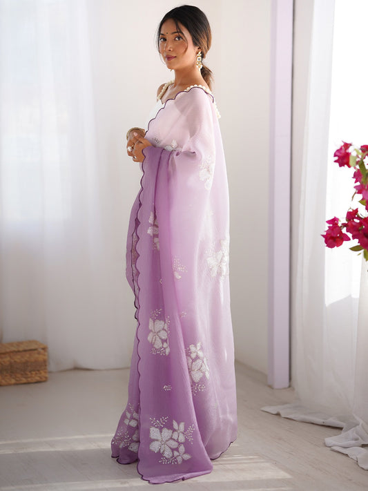 Purple Party Wear Tissue Embellished Saree