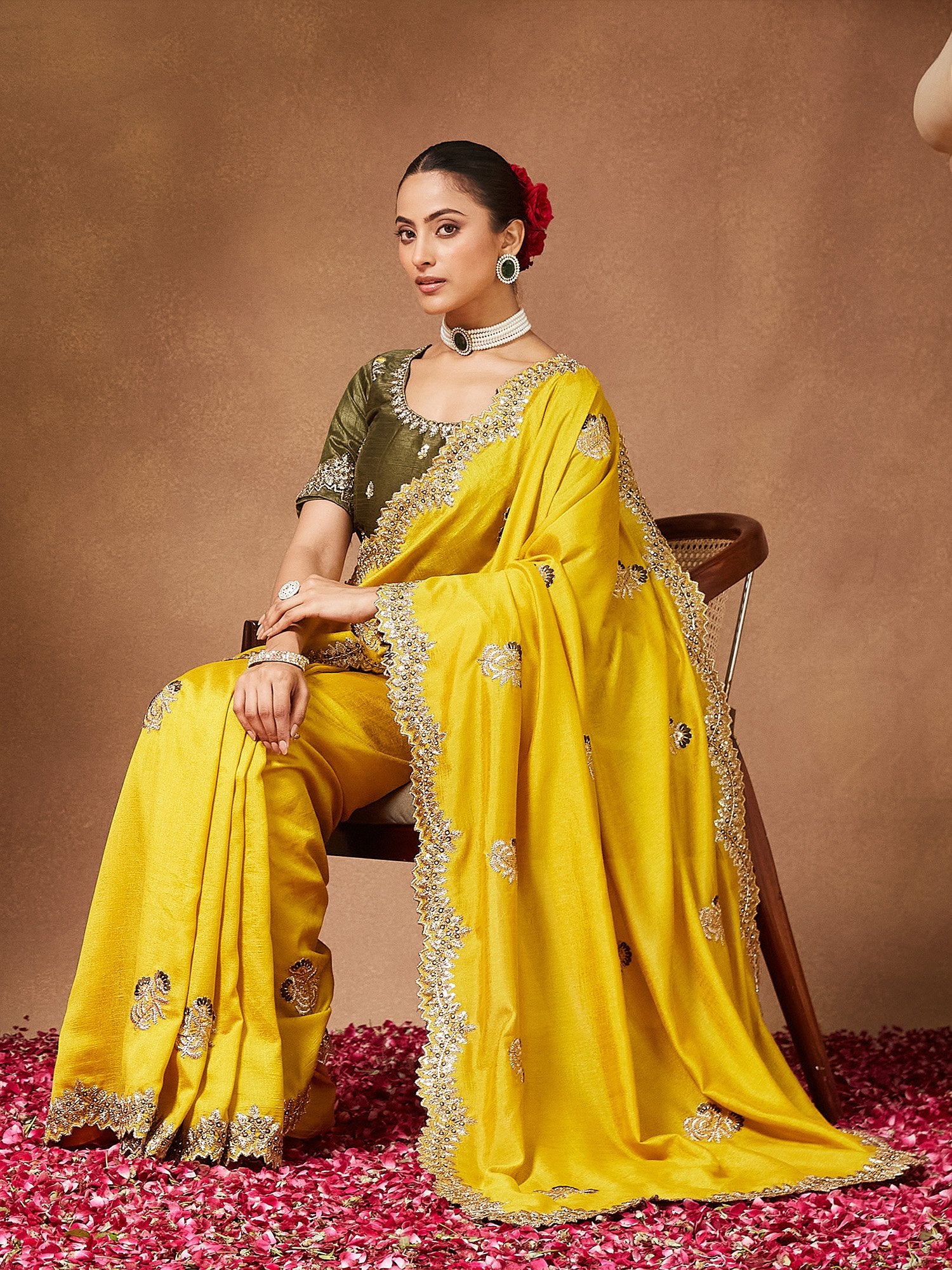 Lemon Party Wear Vichitra Silk Embellished Saree