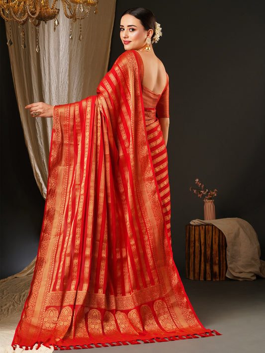 Violet Party Wear Vichitra Silk Zari Embroidered Saree
