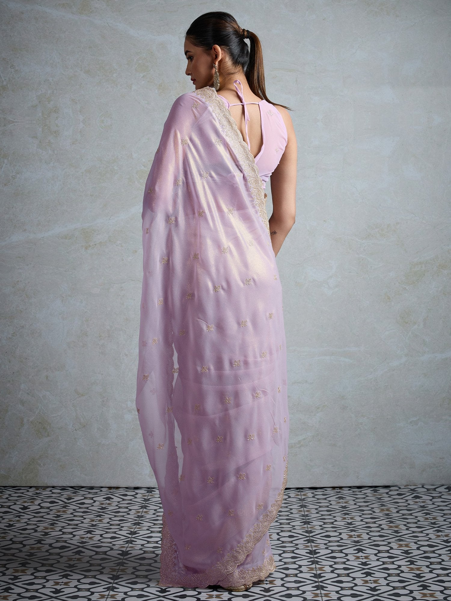 Lavendar Party Wear Georgette Zari Embroidered Saree