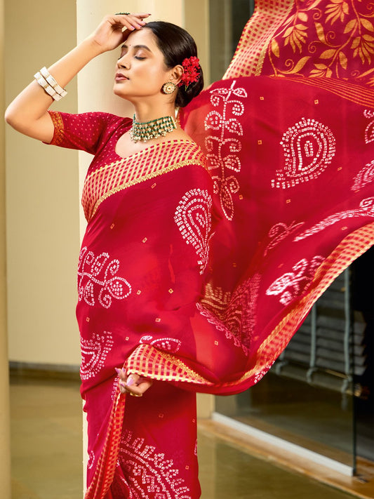 Red Banarasi Bhagalpuri Silk Woven Saree