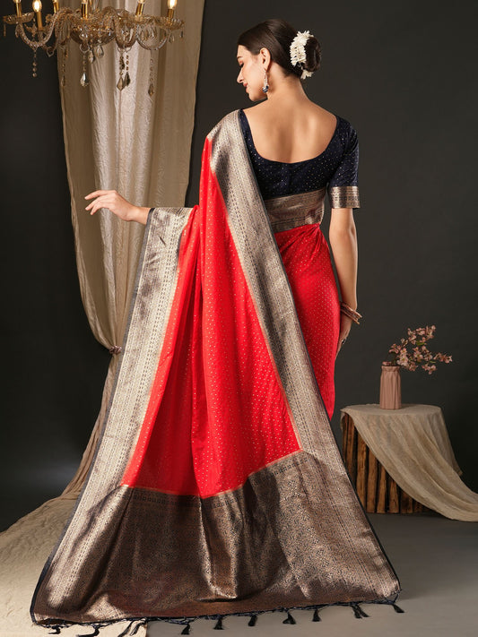 Magenta Party Wear Vichitra Silk Zari Embroidered Saree