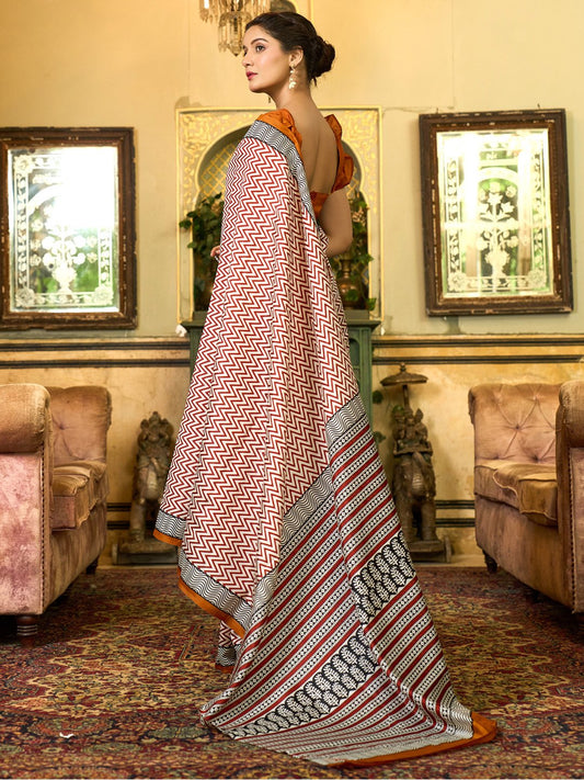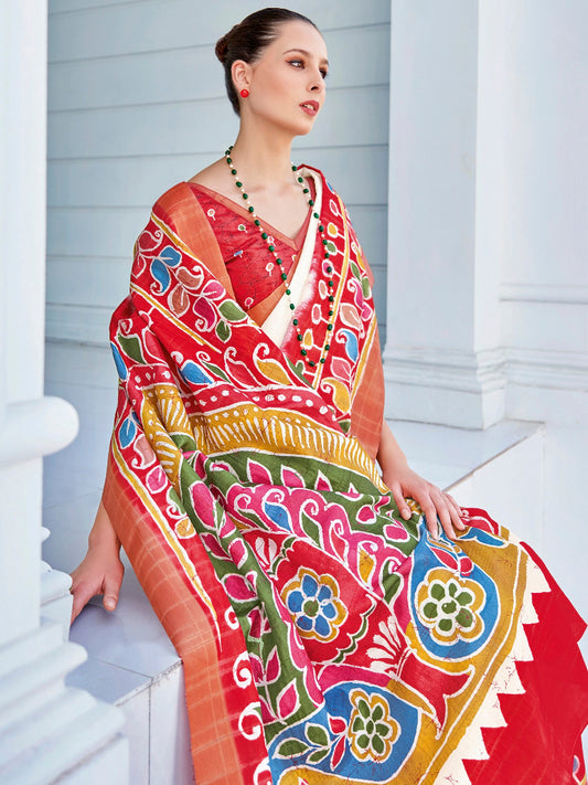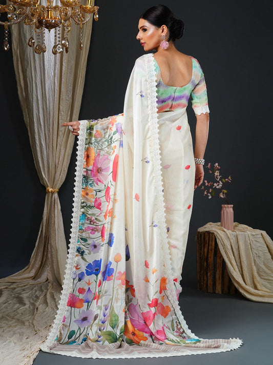 Radiant White Sheer Chiffon Floral Motifs Saree