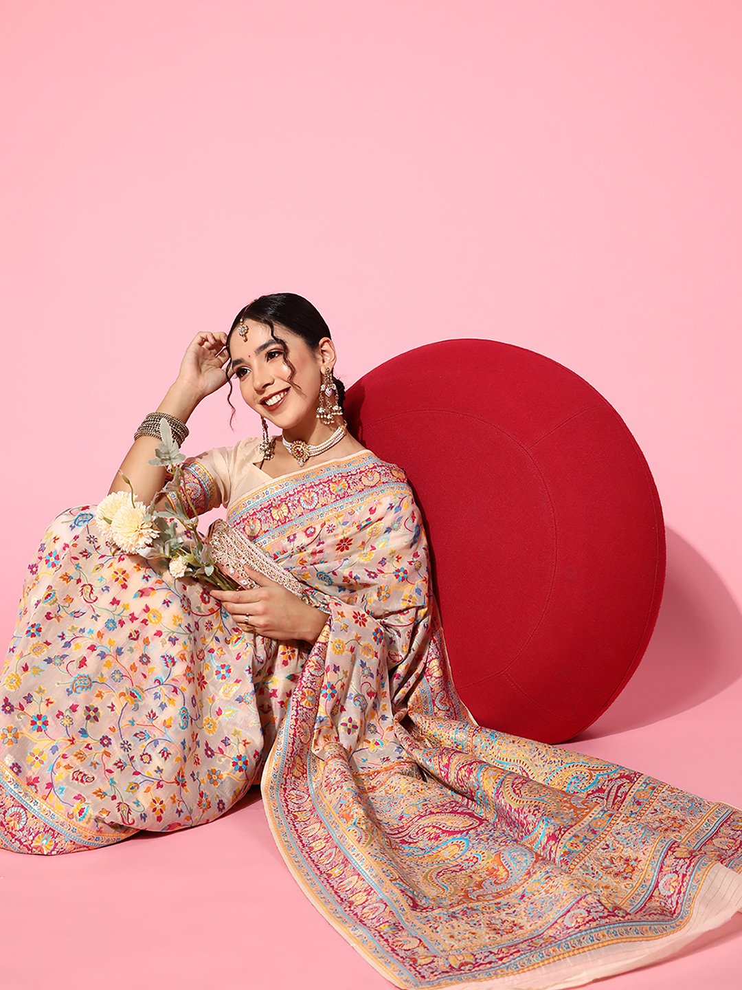 beige banarasi silk blend saree women fashion ethnic traditional wedding festive partywear lightweight soft comfortable elegant designer woven premium quality rich texture graceful stylish trend occasion daily wear collection heritage classic