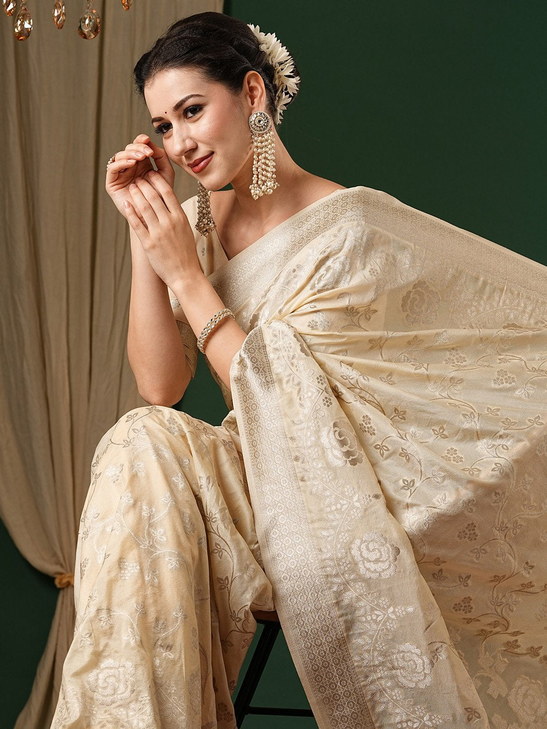 Saree color: Cream