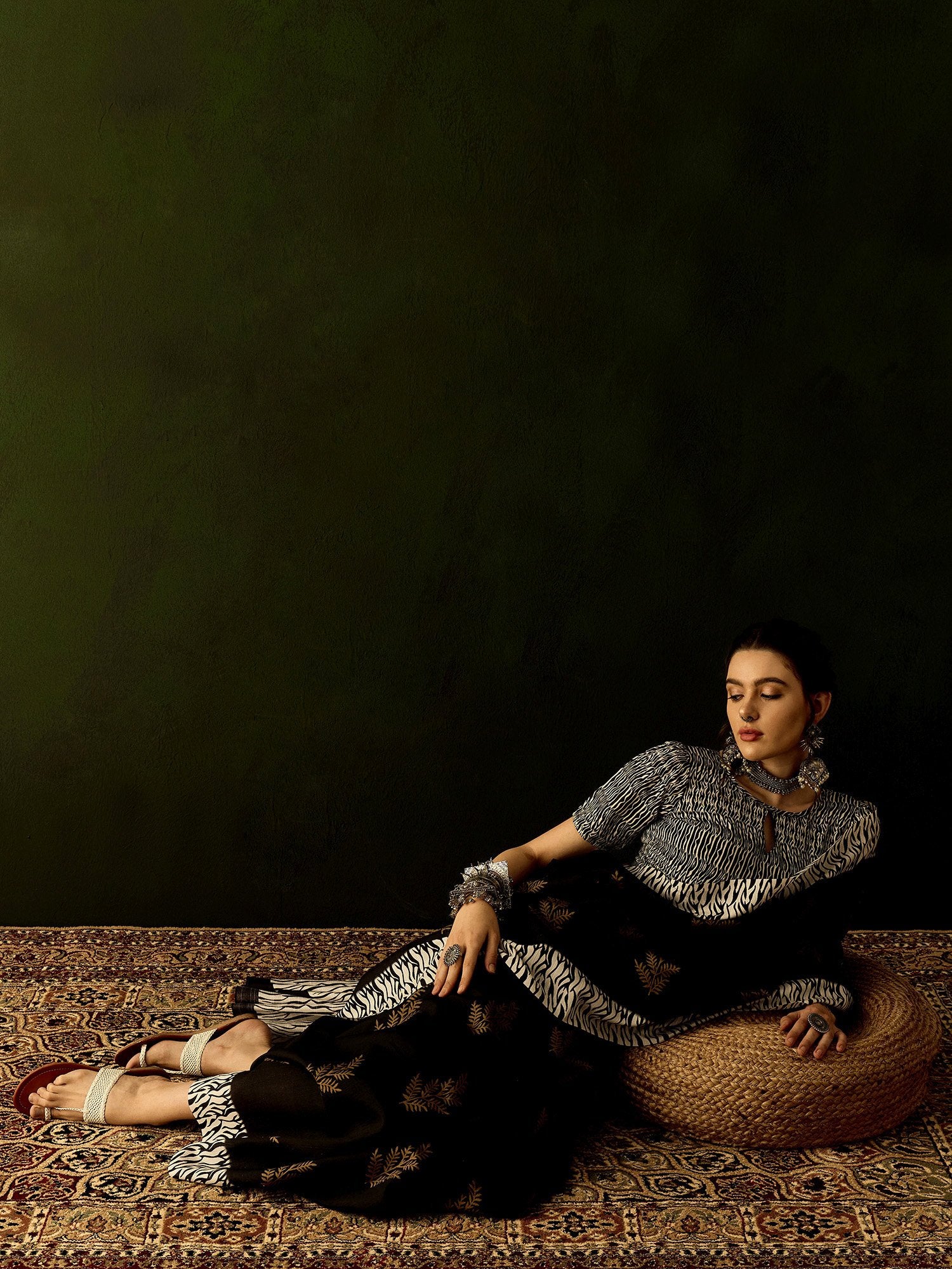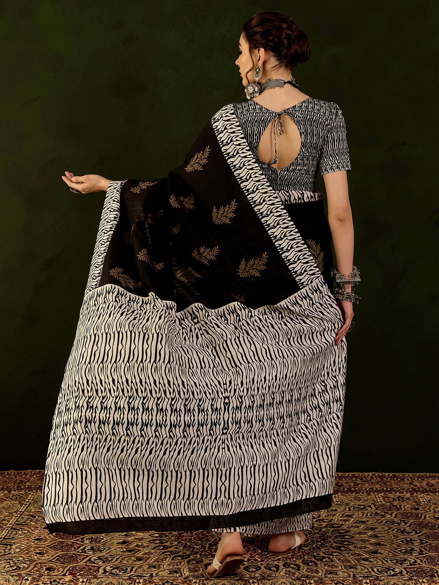 Ethnic Black Bhagalpuri Soft Silk Saree