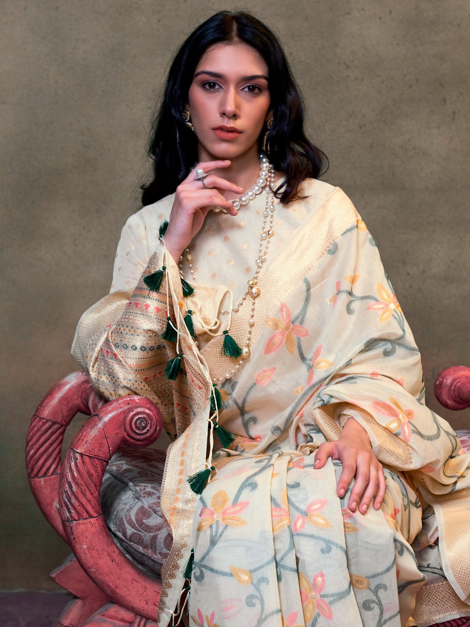 Saree color: Cream
