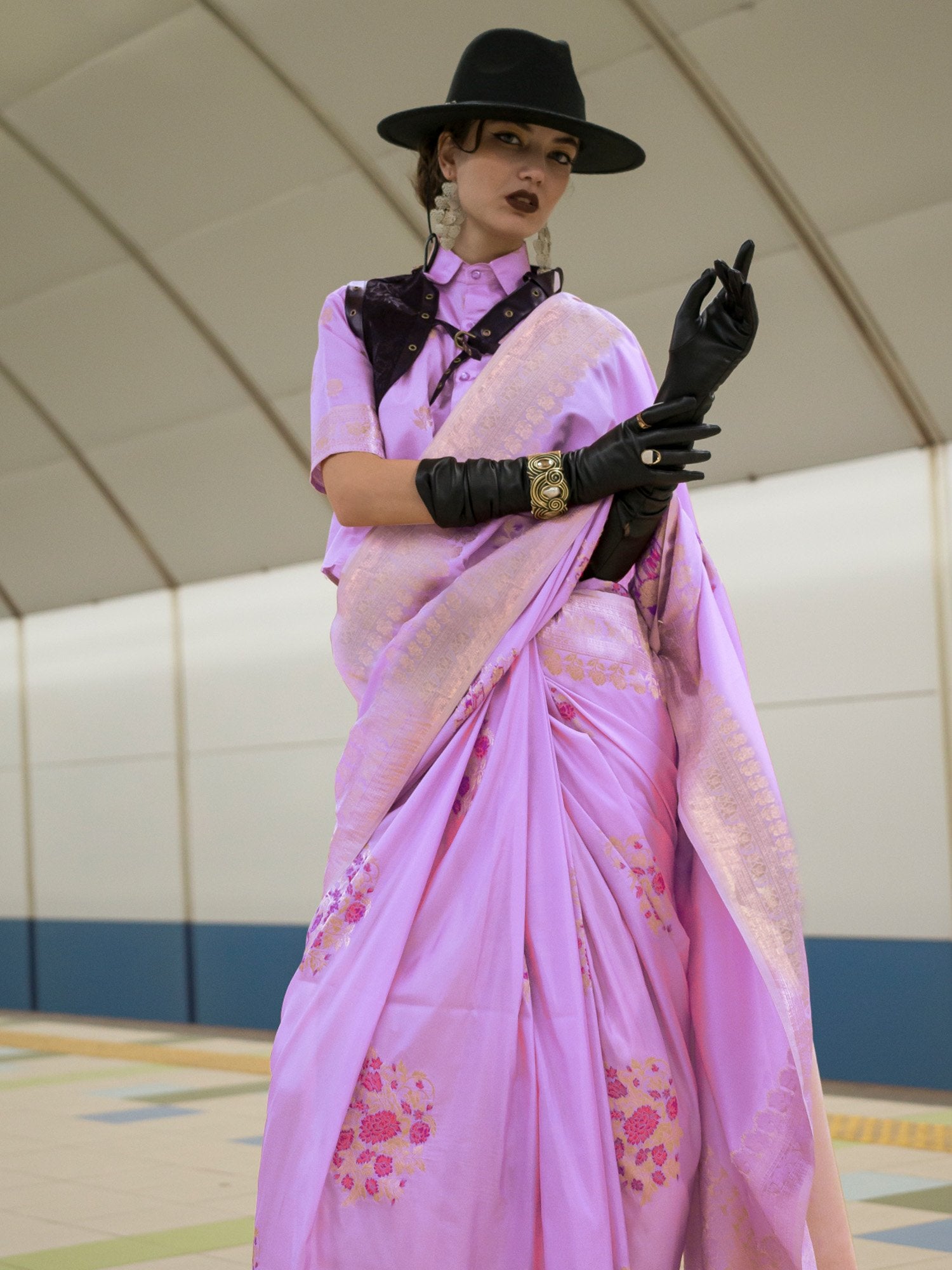 lavender silk blend woven saree women ethnic traditional partywear wedding festive stylish elegant designer lightweight soft comfortable premium quality rich texture graceful chic versatile heritage classic modern occasion collection silk