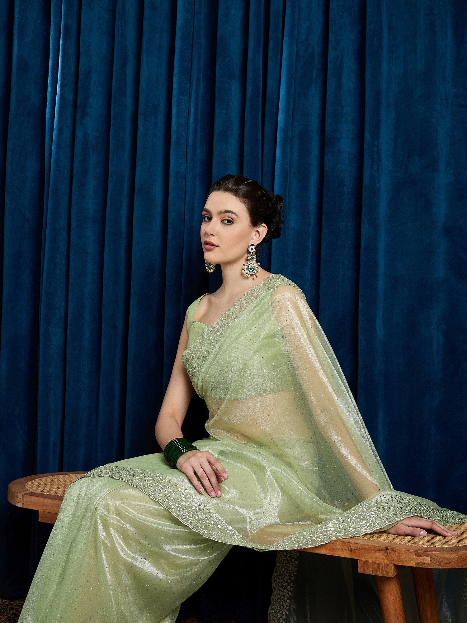 light green party wear net saree women fashion ethnic traditional wedding festive partywear lightweight soft comfortable elegant designer embroidered premium quality rich texture graceful stylish trend occasion daily wear collection heritage classic