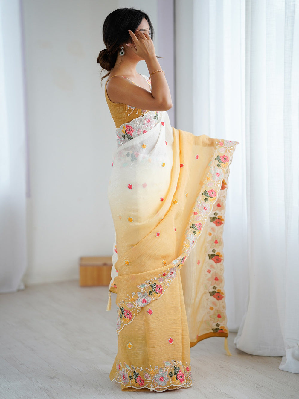 Mustard Party Wear Chiffon Embellished Saree