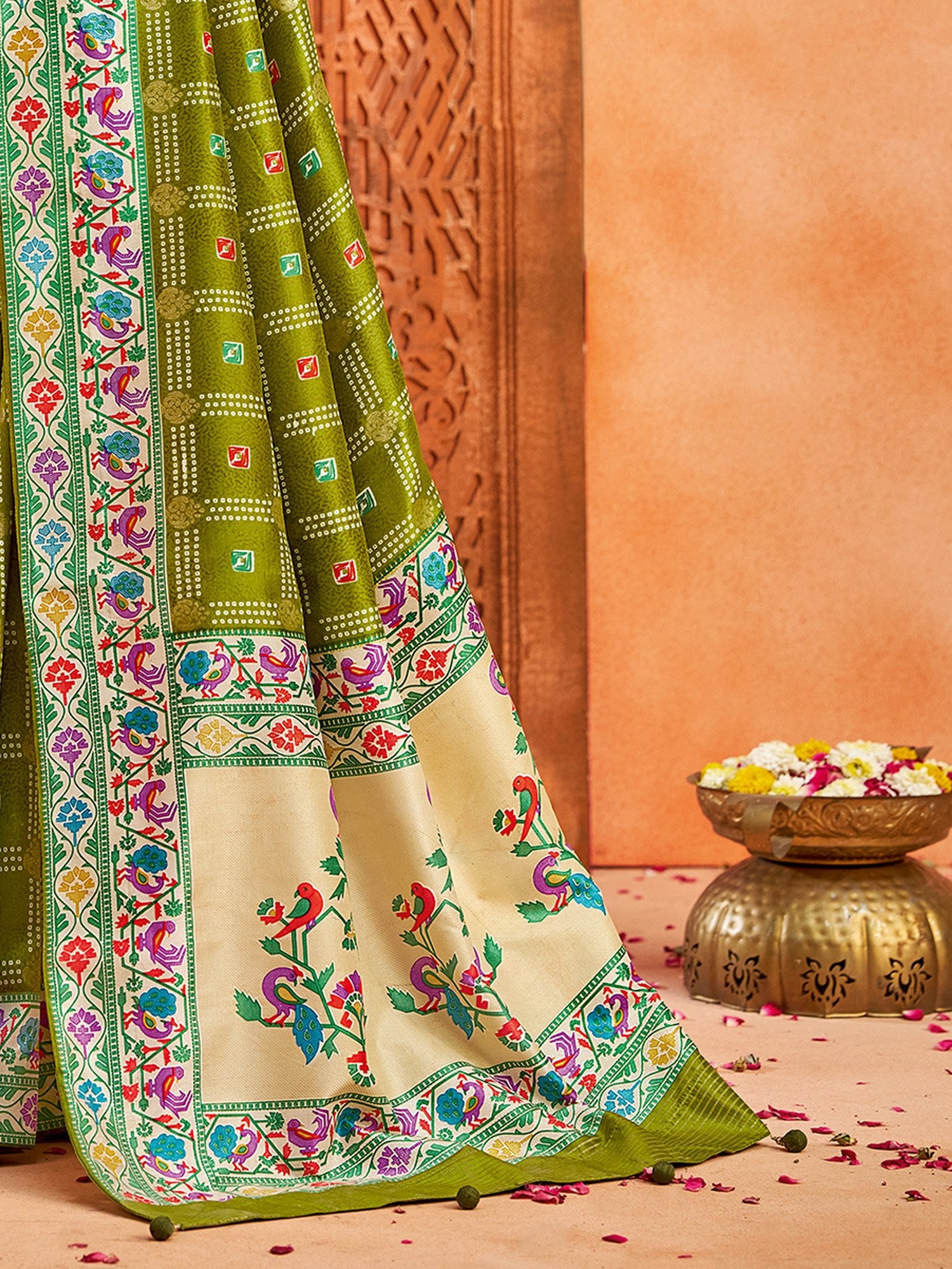 Saree color: Olive