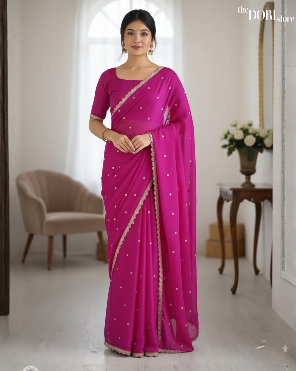 Saree color: pink