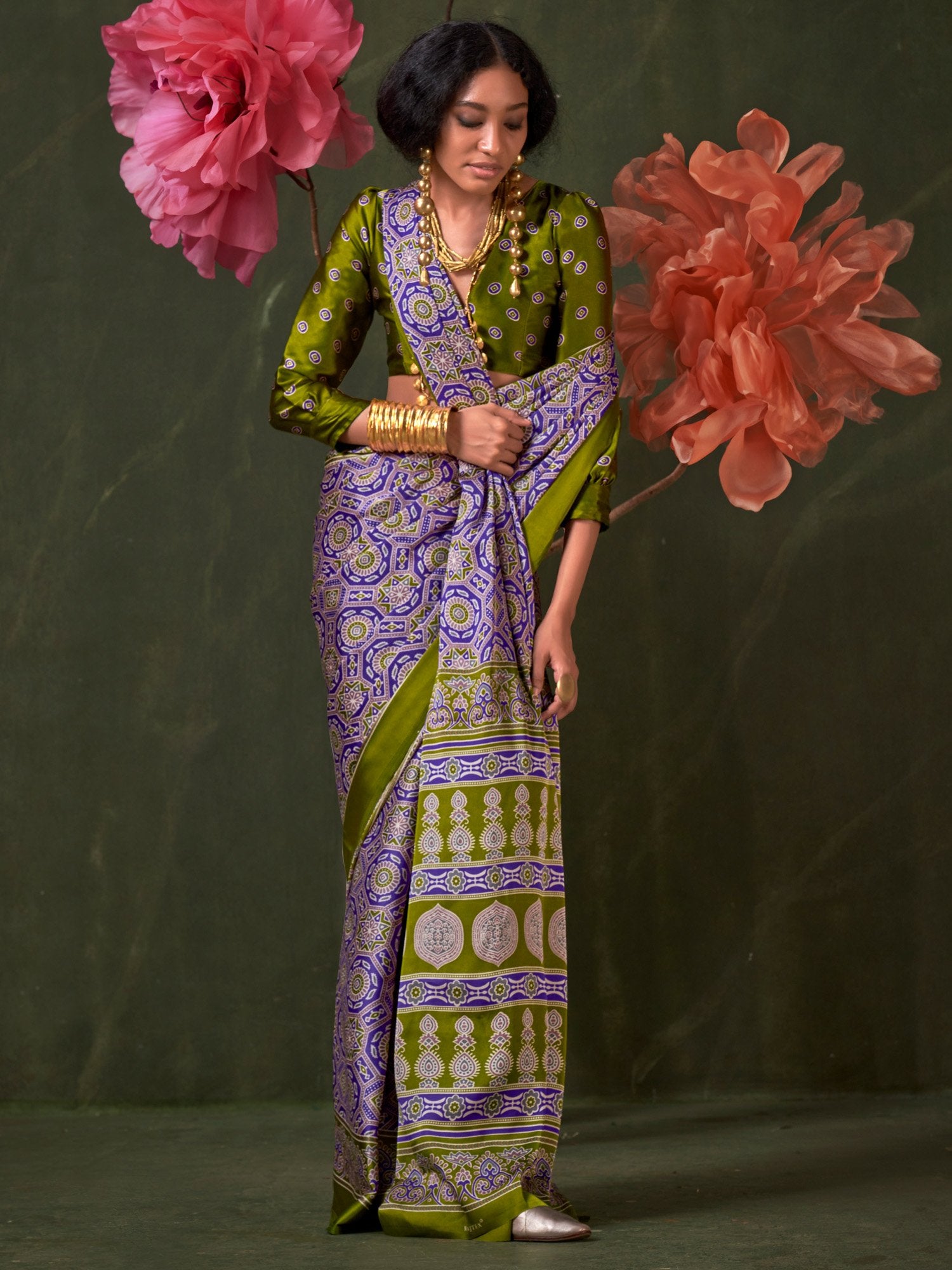 purple block print crepe saree women fashion ethnic traditional wedding festive partywear lightweight soft comfortable elegant designer woven premium quality rich texture graceful stylish trend occasion daily wear collection heritage classic